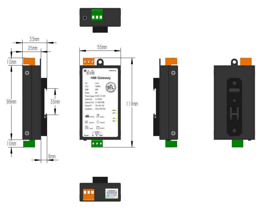 WEB组态网关HMI1001-ARM配合组态编辑软件X2View可实现现场数据采集,并直接转为组态画面进行数据实时监控。用户无需购买组态软件,只需用电脑、手机、IPAD或自带浏览器功能的设备即可登录组态画面进行监控,实现远程监控设备启停、运行等操作,给用户带来良好的操作体验。同时具微信报警、短信平台报警、钉钉报警、邮件报警、MQTT服务、工程上传云端等功能;还可以转发为BACnet服务器、Modbus服务器、OPC UA服务器、MQTT服务器、IEC61850服务器(需定制),开放HTTP WEB服务被第三方的系统集成。
