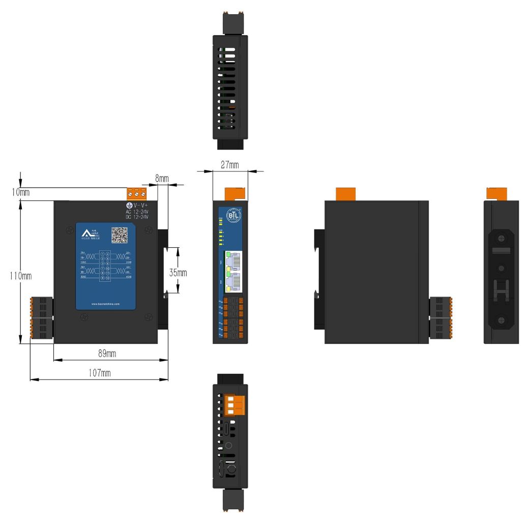 接口:2个网口,4个RS485接口(电磁隔离) 温度:-20~70℃(工作) -40~85℃(储运)